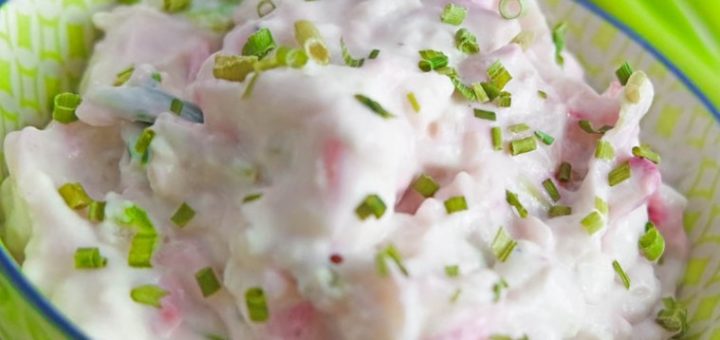 Zutaten: 4 mittelgroße Rote-Bete, gekocht. 100 g saure Sahne 1 Handvoll gehackte Walnüsse 10 gehackte Minzblätter 1 Handvoll Granatapfelkernen Vorbereitung: Schneiden Sie die rote...